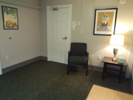 This room requires the use of stairs. The building is open from 9 am - 9 pm. Access to the bathroom on the third floor.