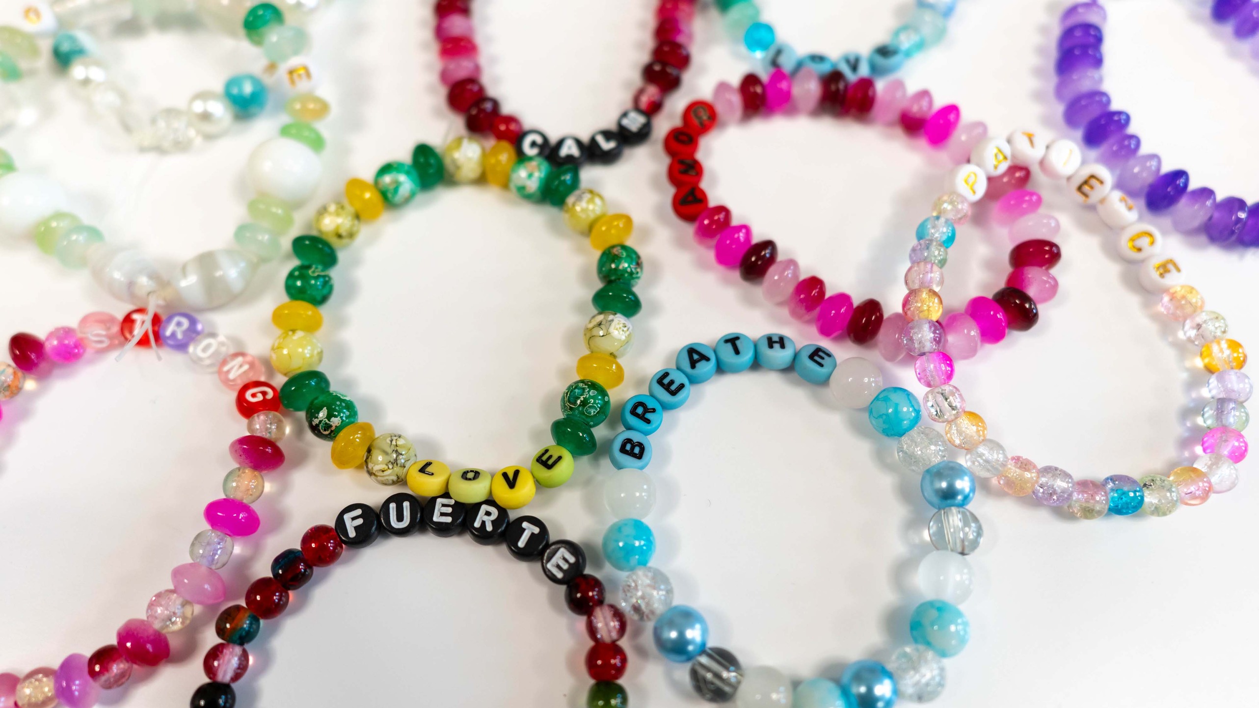 A sampling of bracelets made by volunteers as messages of strength to new parents, through the St. Luke's Nurse Family Partnership initiative. Photo by Christa Neu.